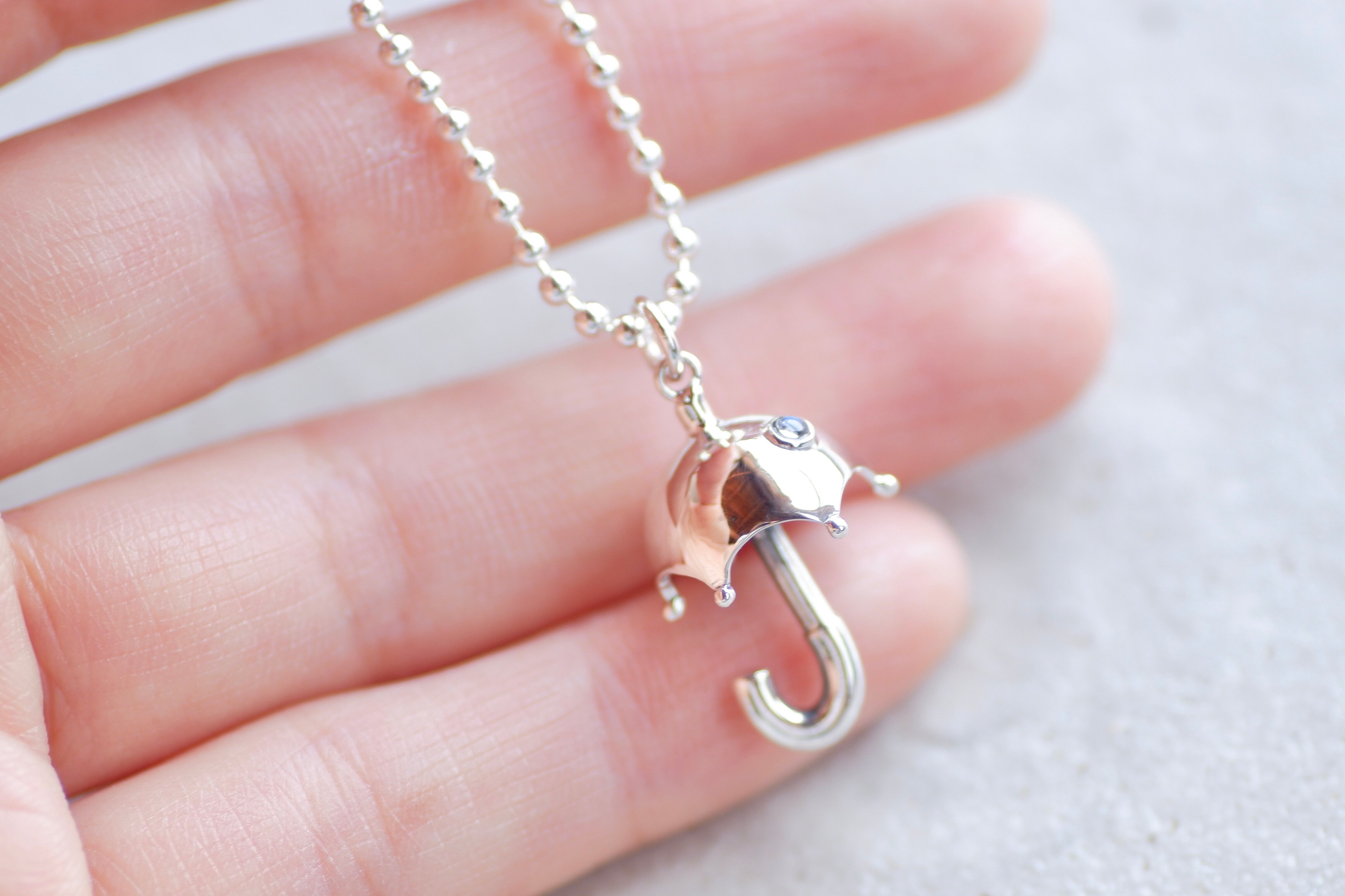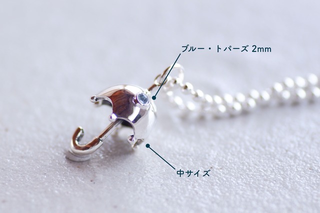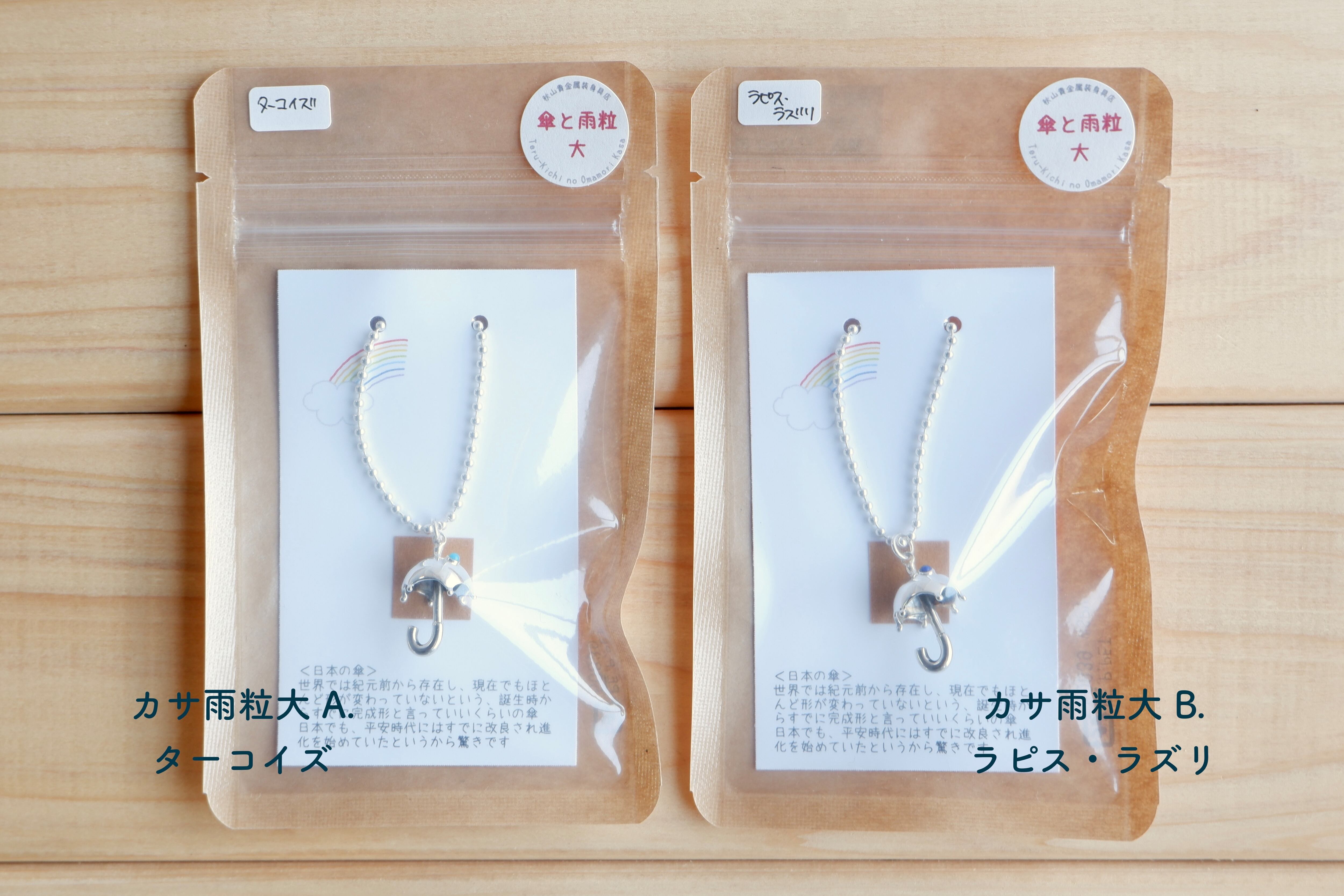 雨粒はカサの表面に宝石(カボション・カット ラウンド2mm)が留まっているタイプとなります。