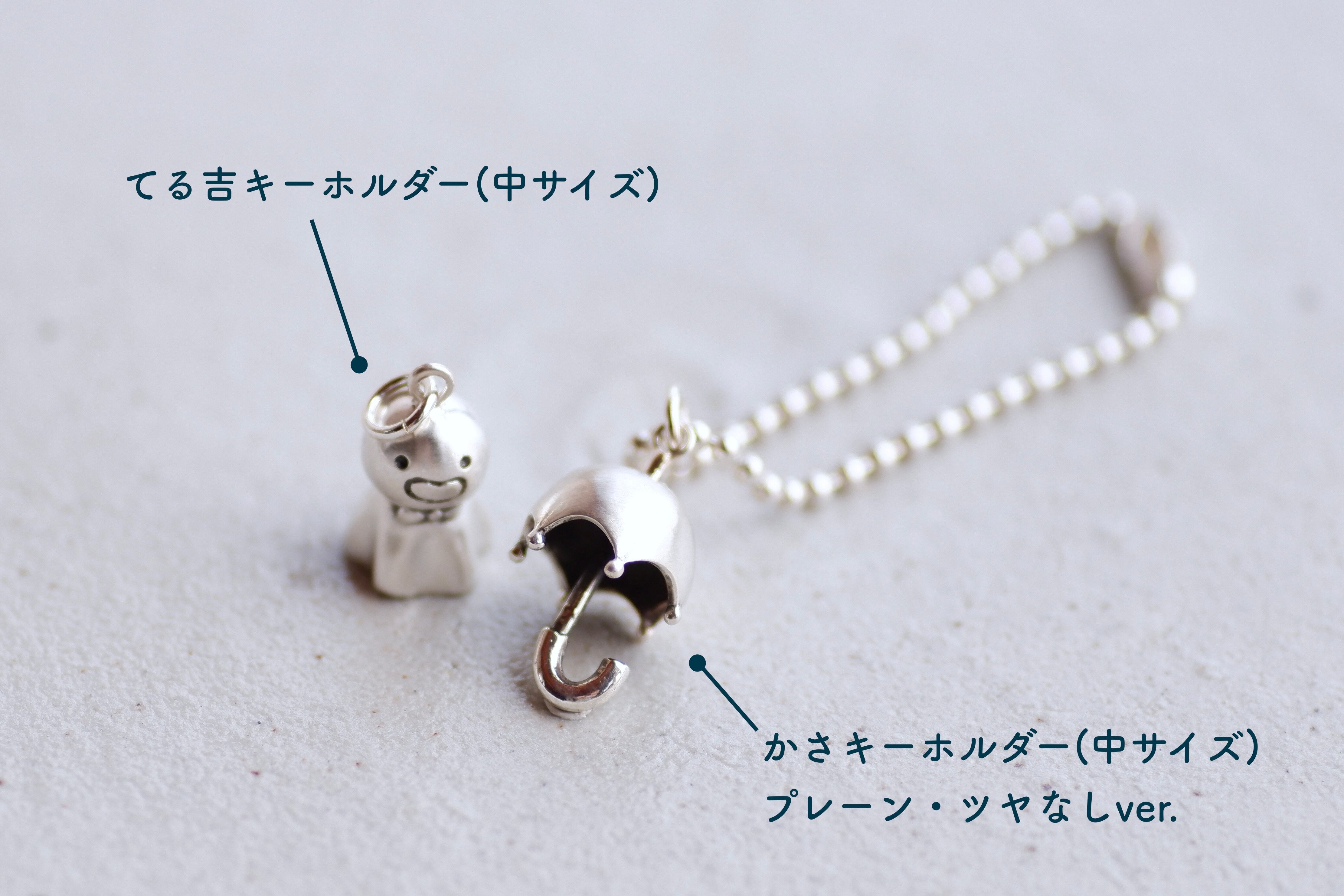 *画像は「雨粒ver.」大きさ各種、「パラソルver.」、「プレーン・ツヤなしver.」、「てる吉キーホルダー小サイズ」が混在しています。ご注文いただく際は商品名やお値段などよくお確かめの上、カートに入れてください。
