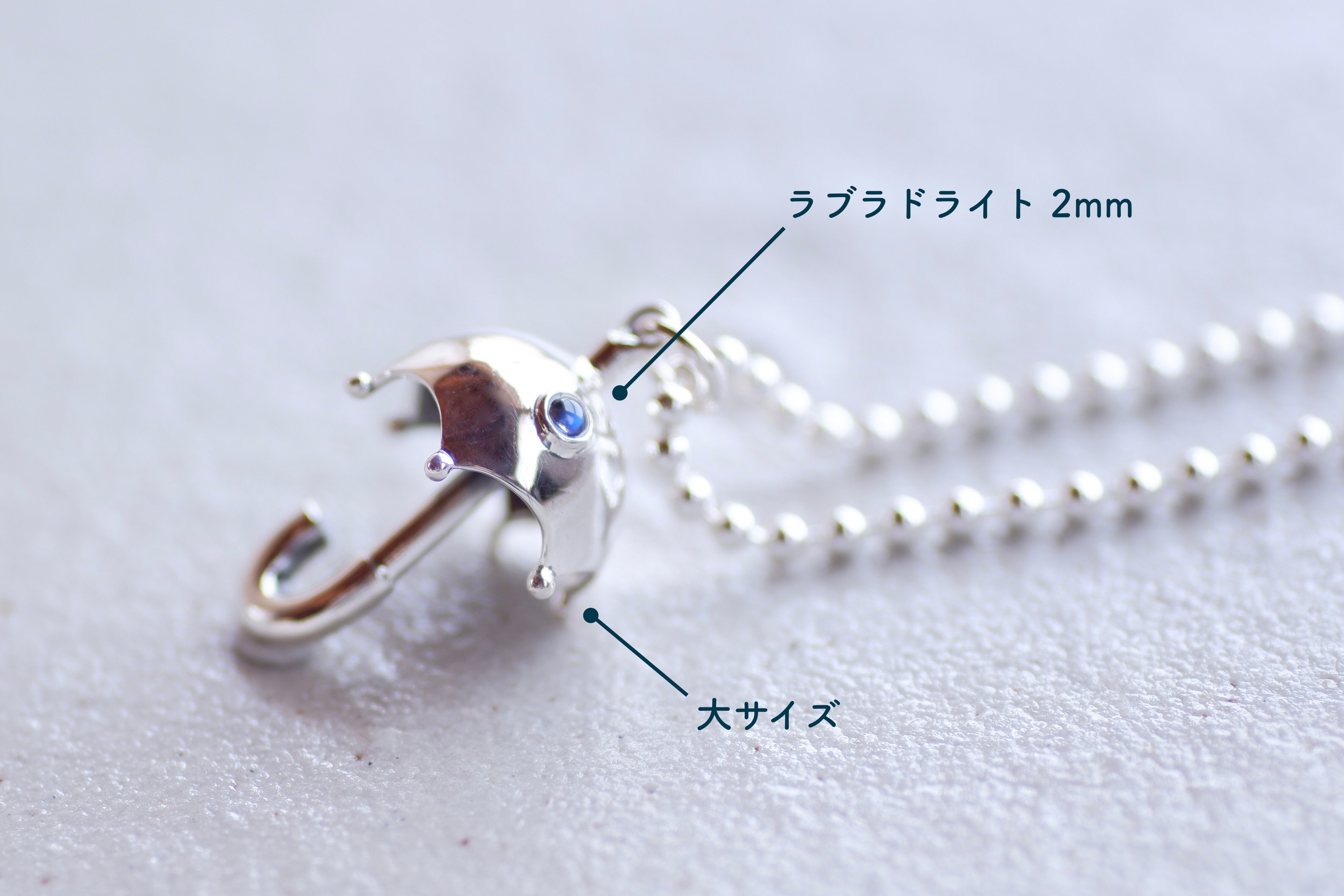 雨粒はカサの表面に宝石(カボション・カット ラウンド2mm)が留まっているタイプとなります。