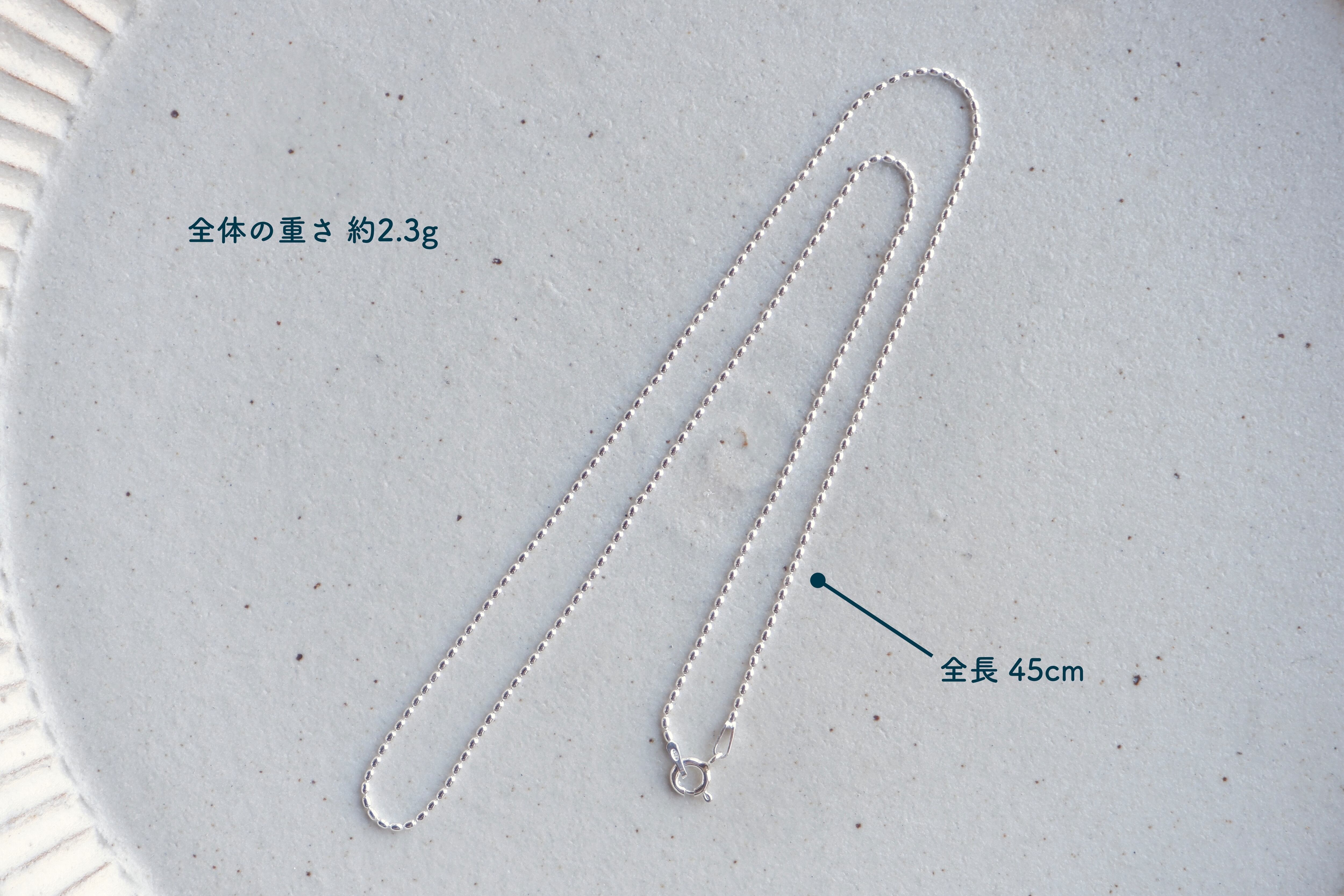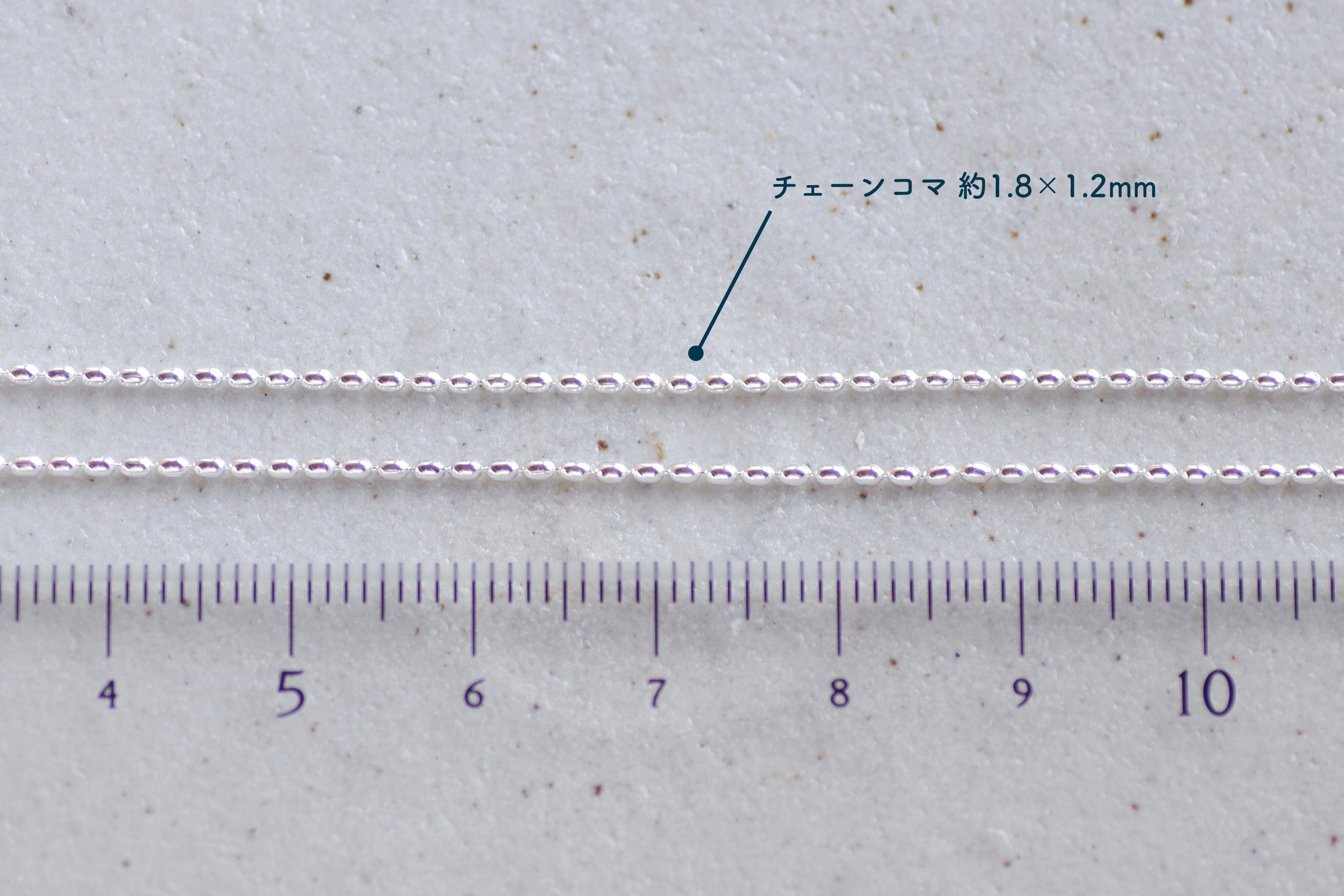 幅1.2mm、全長45cmのシルバー製楕円チェーンです。