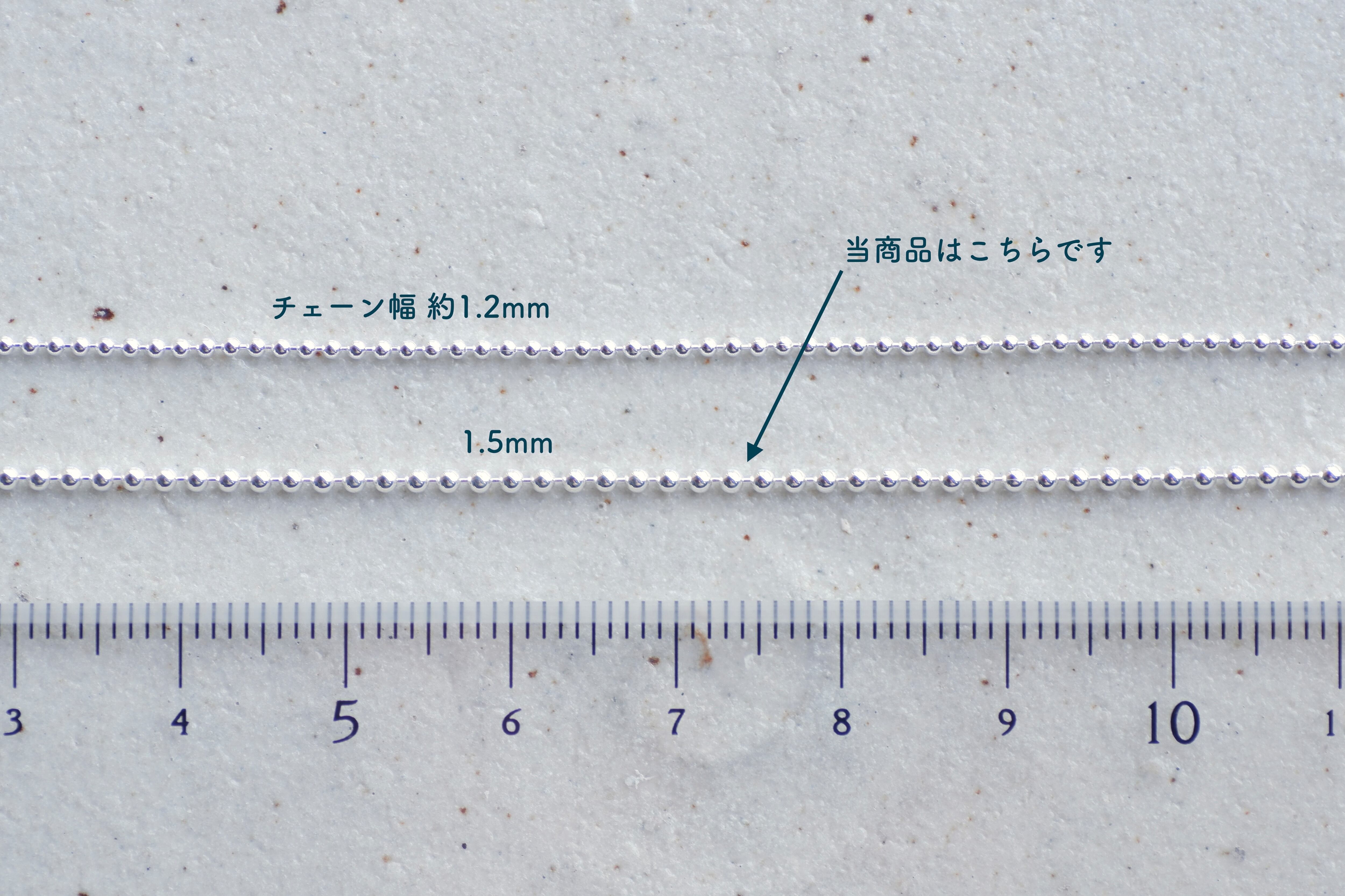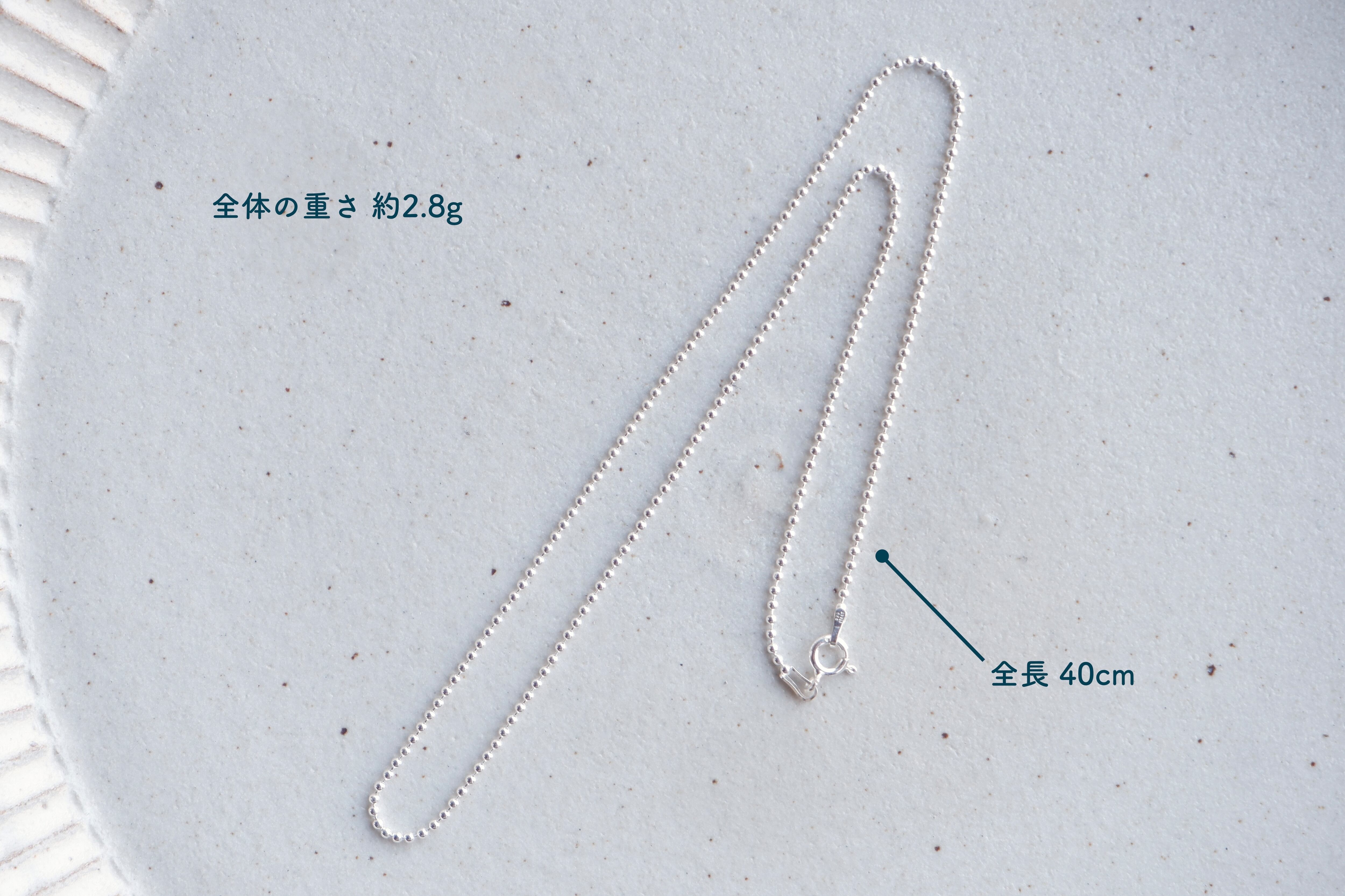 幅1.5mm、全長40mのシルバー製ボールチェーンです。