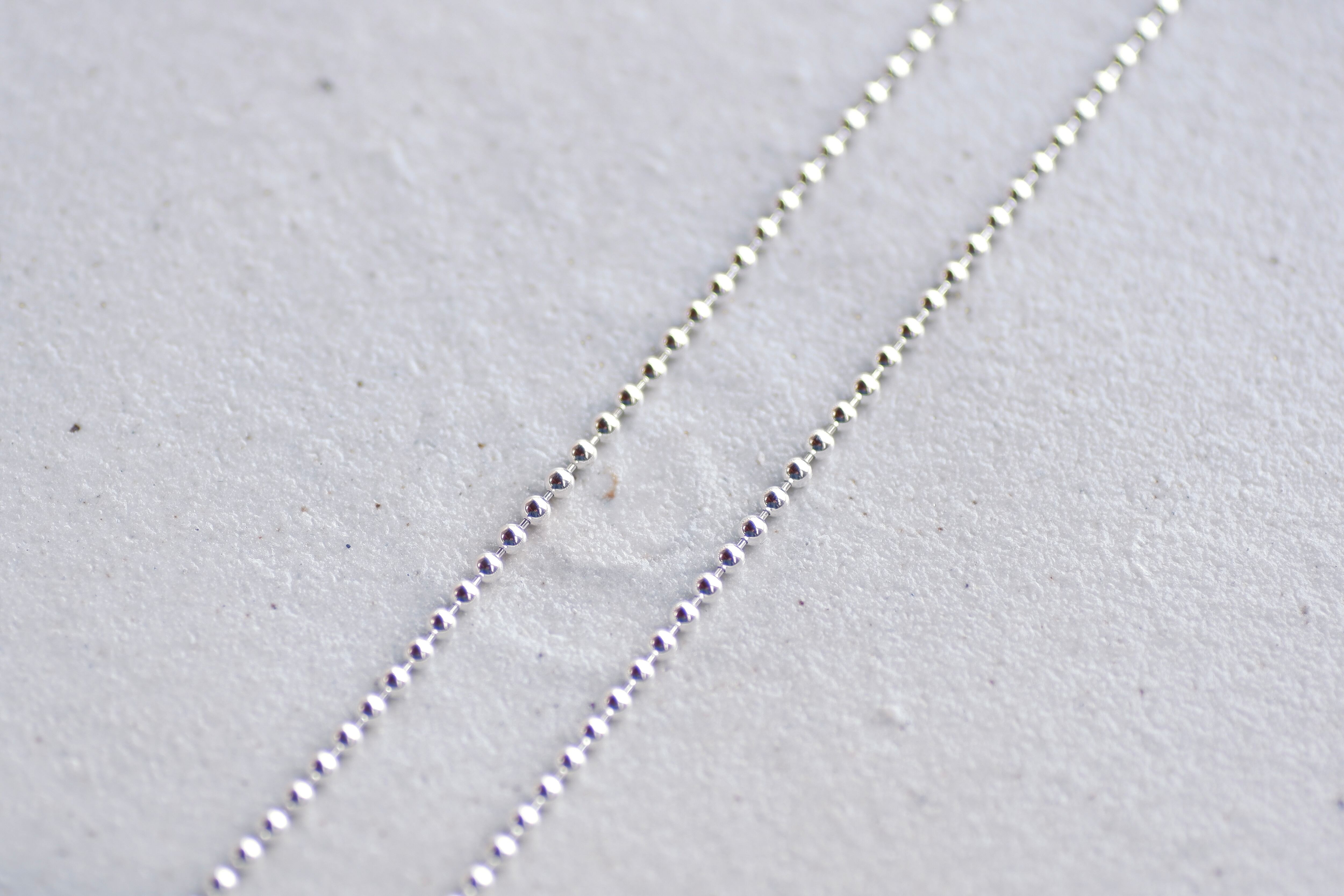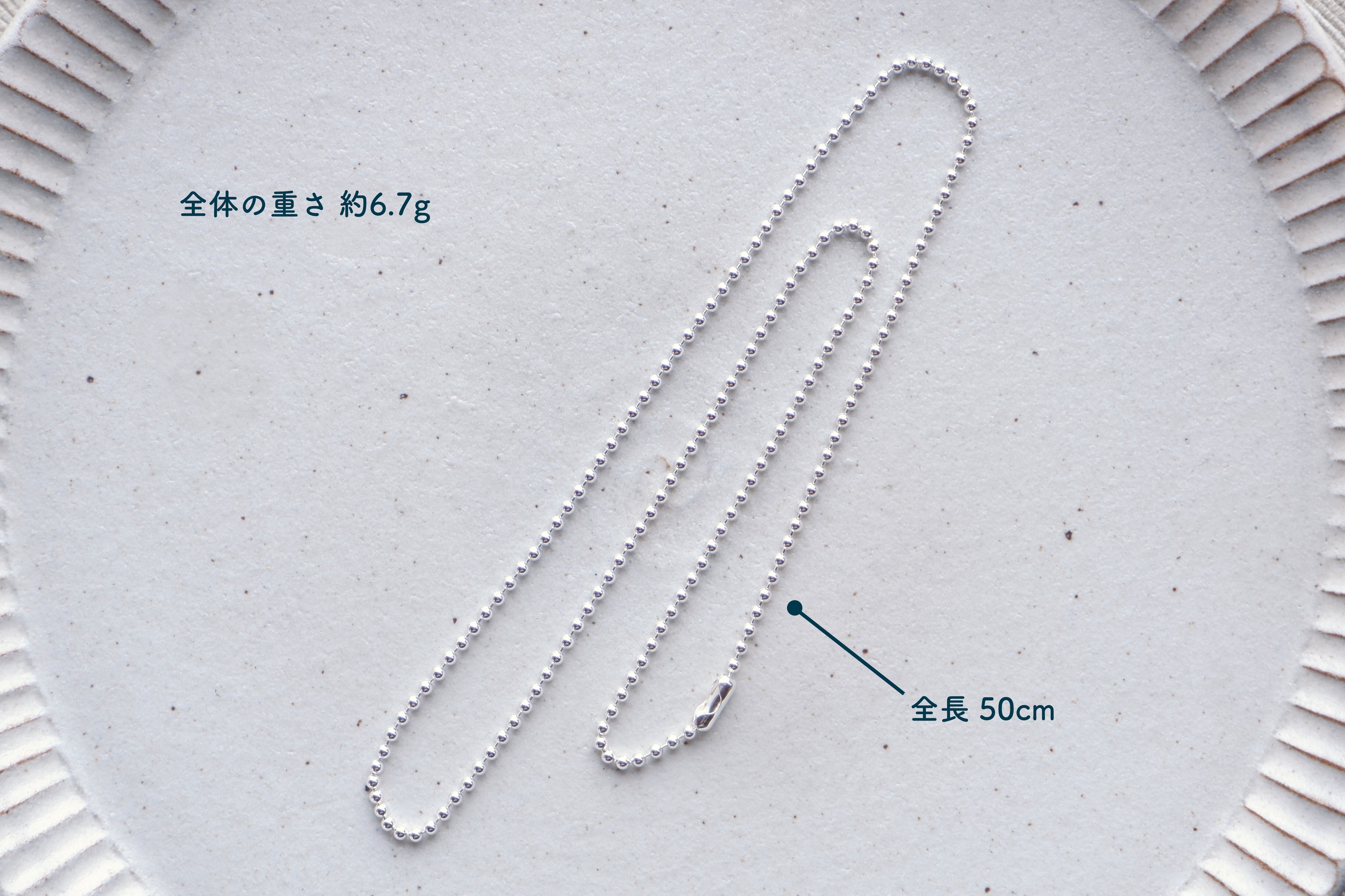 幅2.3mm、全長50mのシルバー製ボールチェーンです。