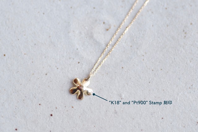 全体はK18イエローゴールド、花の中心はPt900プラチナです。