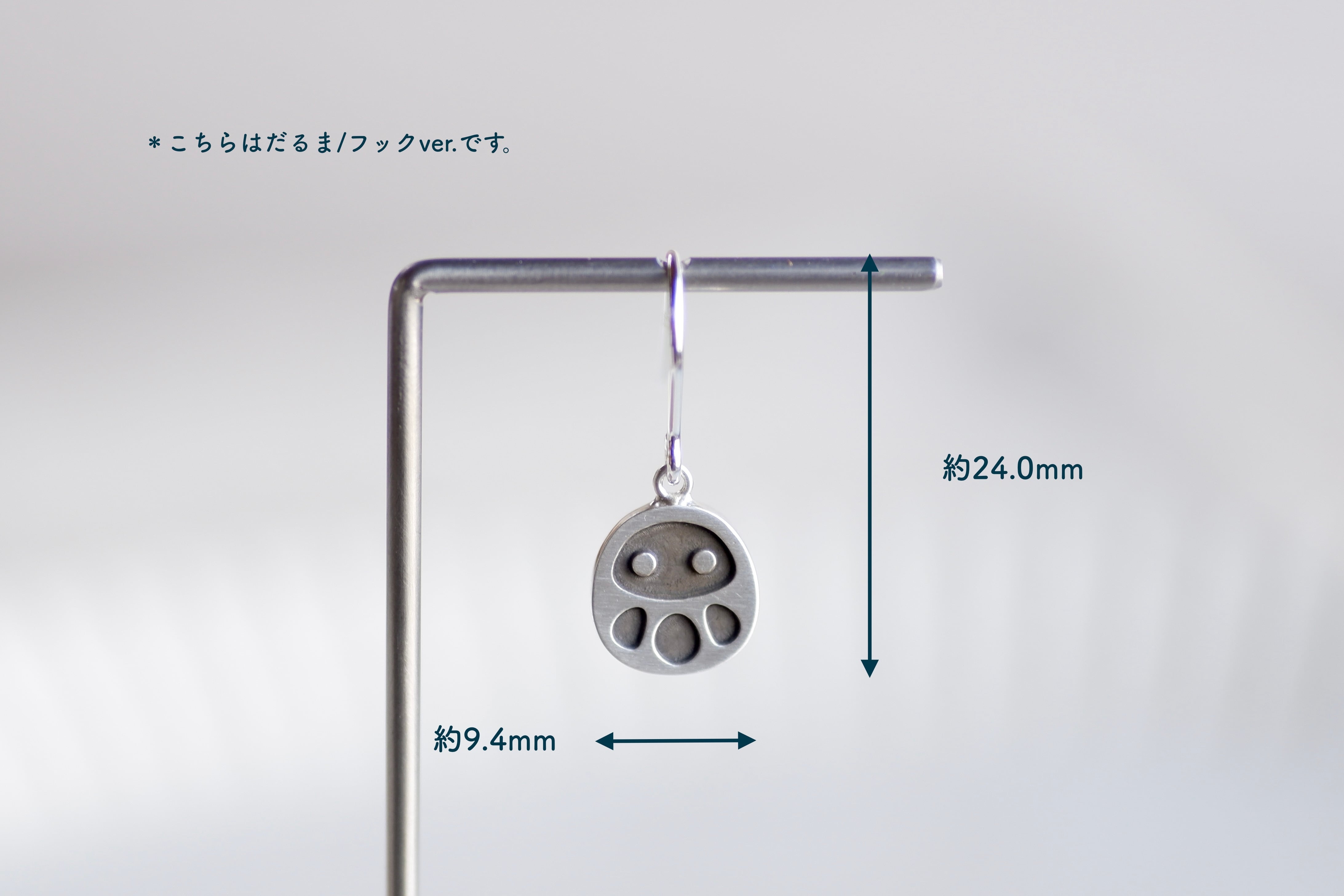 トップの大きさ…フック型 約縦24.0×幅9.4mm/ドロップ型 約縦16.2×幅9.4mm/ 厚み2.0〜2.5mm(共通)