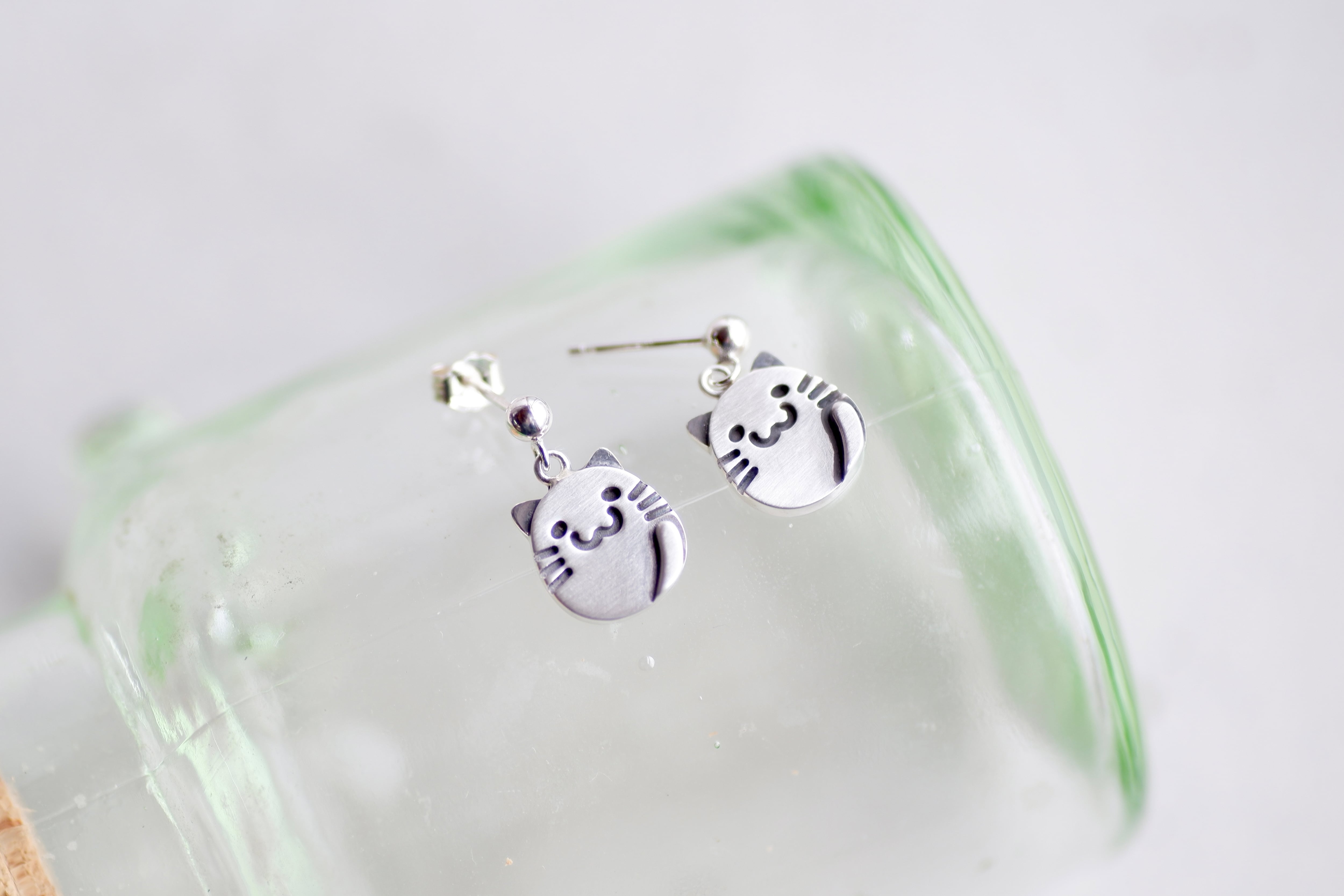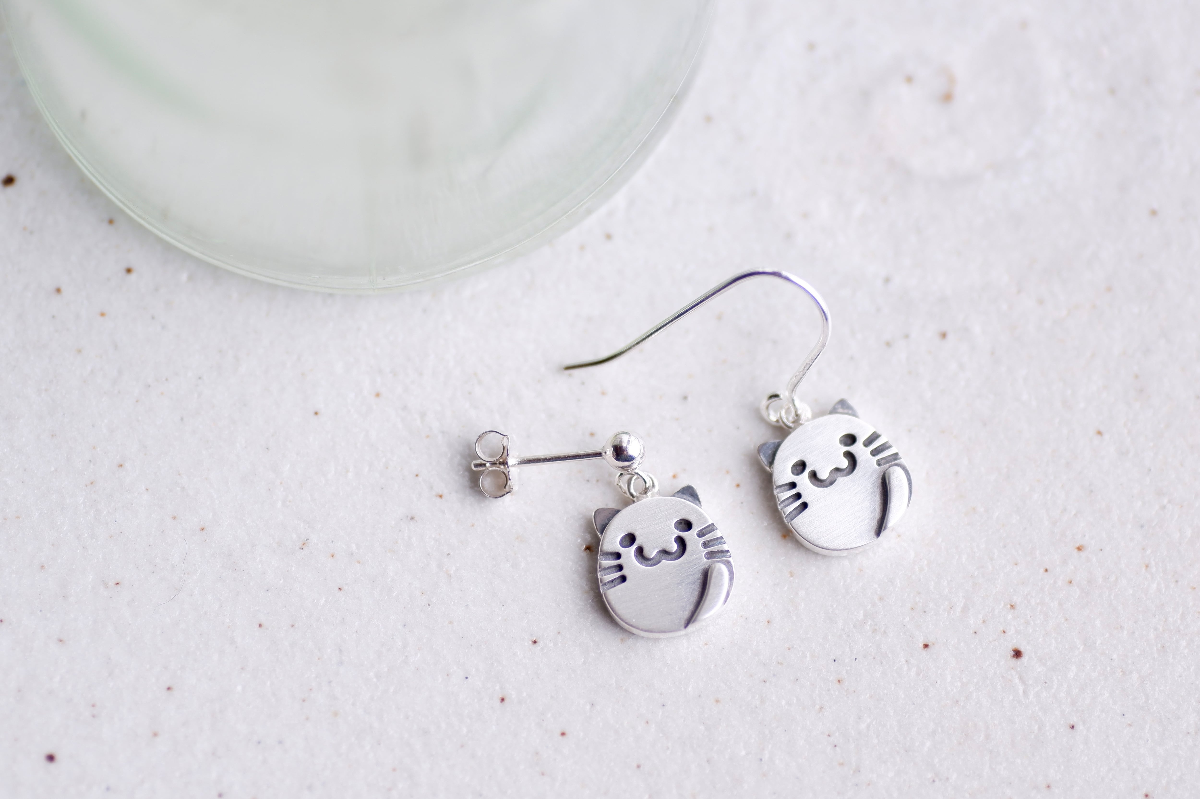【ORDER】happy cat pierce SV925 <Hook or Drop> / ねこ ピアス