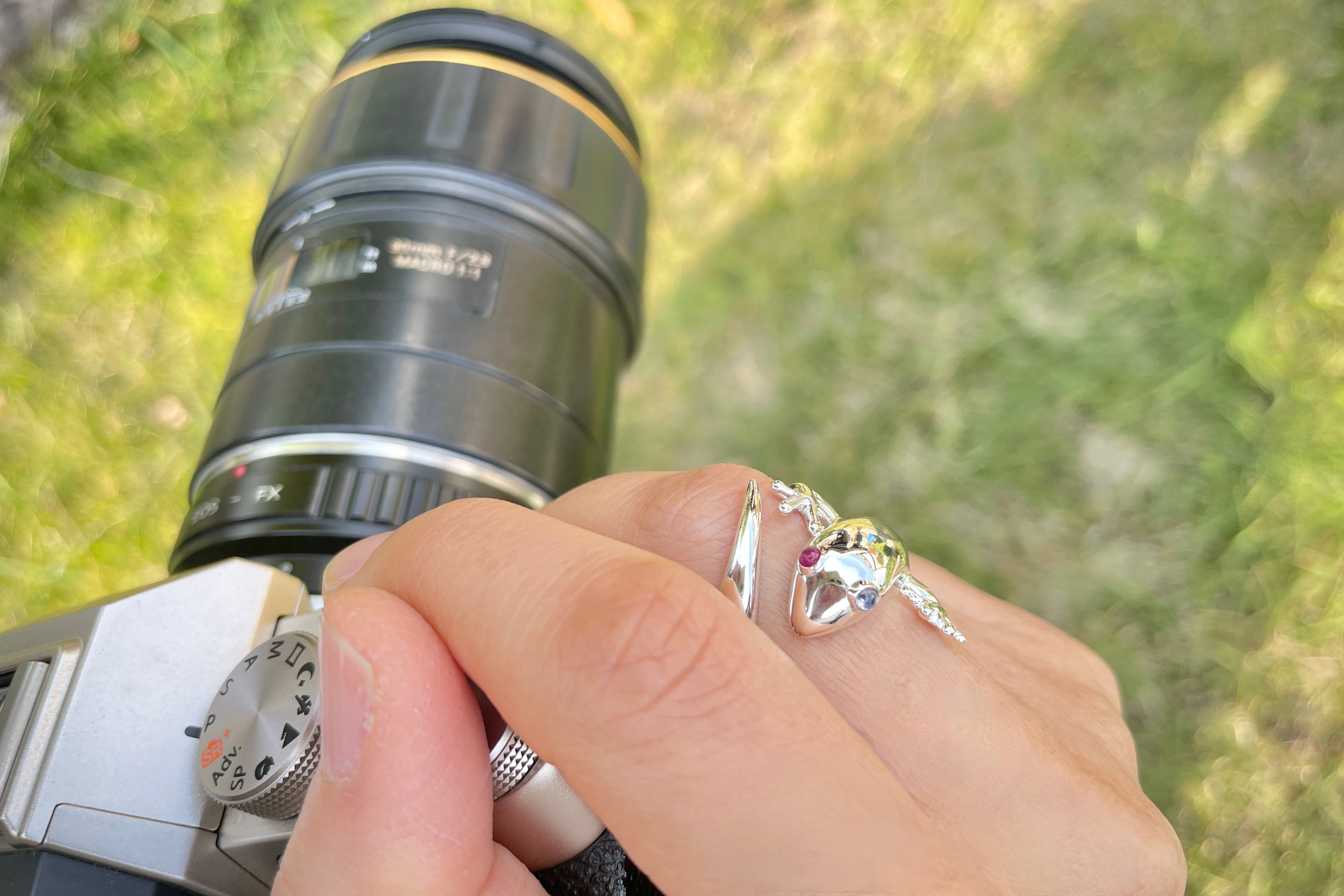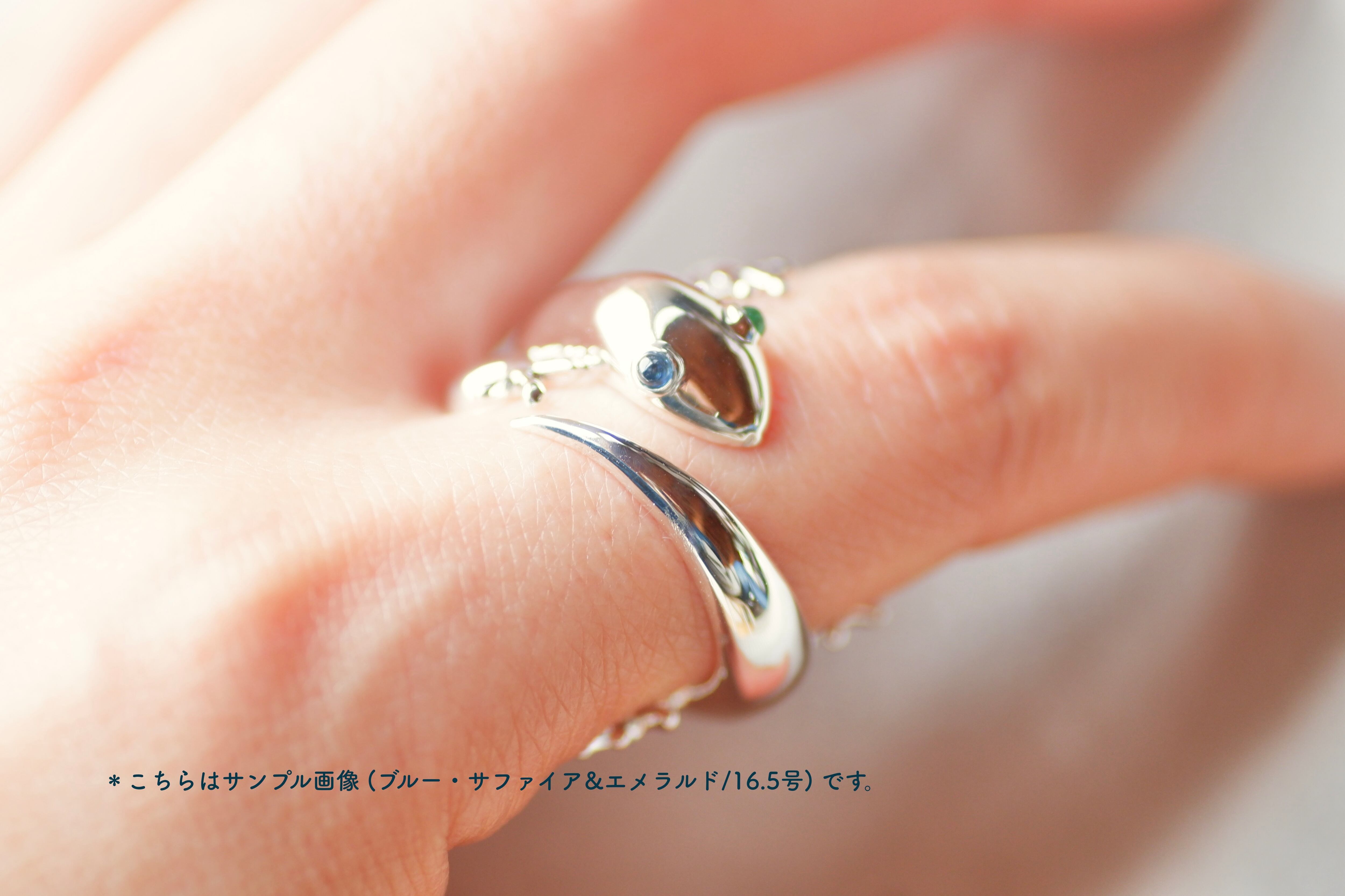【IN STOCK / SALE 】Gecko Odd-eye ring #10.5 SV925 <Emerald&Orange Moonstone> / カベチョロ オッドアイ リング <エメラルド&オレンジ・ムーンストーン>