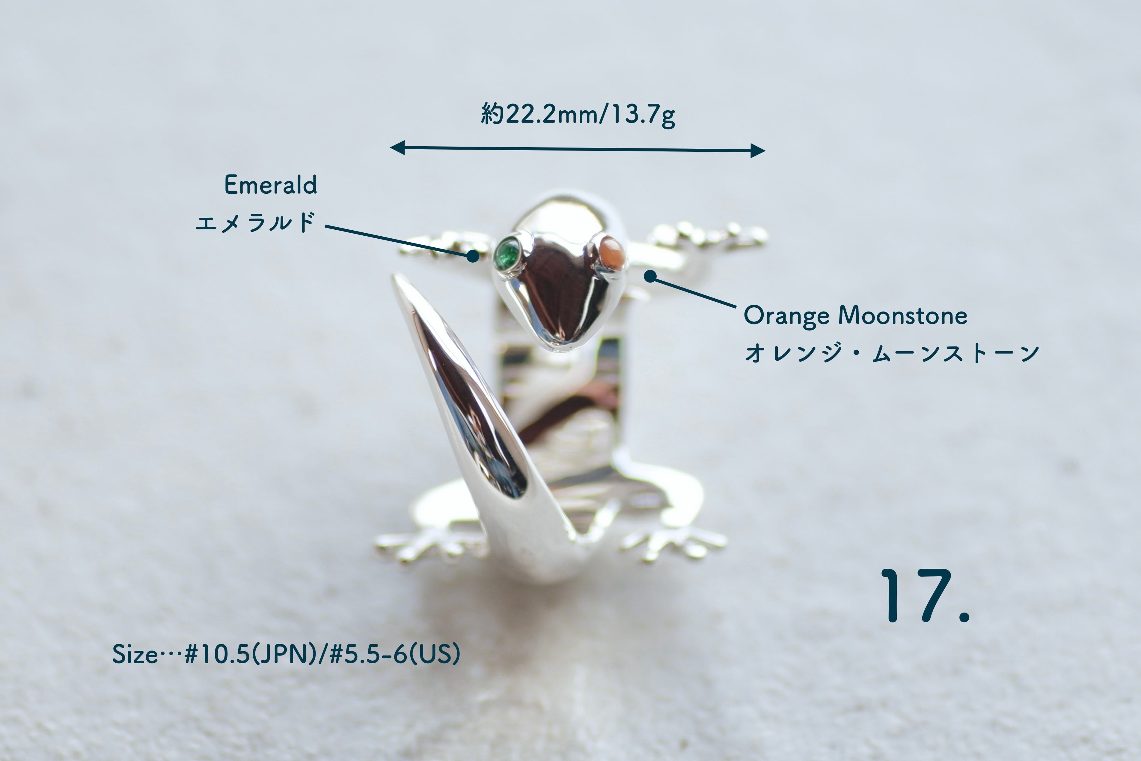 17. サイズ10.5号 / 右目 エメラルド / 左目 オレンジ・ムーンストーン